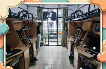 学校宿舍是标准的学生公寓,上床下铺,有热水器,洗澡非常的方便。而且宿舍内空间宽敞,光线明亮,干净整洁。