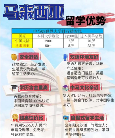 马来西亚是一个多元文化的国家,拥有马来人、华人、印度人等不同种族和文化背景的人。在这里读书可以更好地了解和欣赏各种不同的文化传统和风俗习惯。