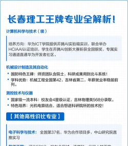 机械设计制造及其自动化专业、测控技术与仪器专业等也是长春理工大学的特色专业。这些专业注重理论与实践相结合,培养学生的工程素养和创新能力,为国家的工业发展和科技创新输送了大量优秀人才。