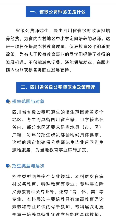 国家公费师范对区域不做要求,即四川各地区、各县市的考生都能报考。