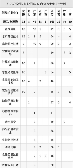 整理汇总了江苏农牧科技职业学院录取分数线最高的10个专业,它们具体是:动物医学、畜牧兽医、宠物医疗技术、动物药学、中药制药、现代农业技术、食品检验检测技术、园林技术、食品药品监督管理、中草药栽培与加工技术