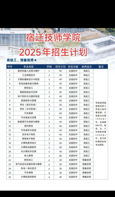 大专高技:学前教育、智能制造技术(数控加工方向)、计算机辅助设计与制作(数控编程方向)、柔性智能制造(机器人方向)、电气自动化设备安装与维修、机电设备安装与维护、光电仪器制造与维修、计算机影视动漫、计算机网络技术、电子商务(网络运营管理)、电子商务(网络营销方向)、电子商务(美工方向)、财务会计、中餐烹饪、西餐烹饪、食品药品安全与检测、汽车运用与维修(新能源方向)、汽车运用与维修(车身修复)、汽车运用与维修(美容与装潢)。