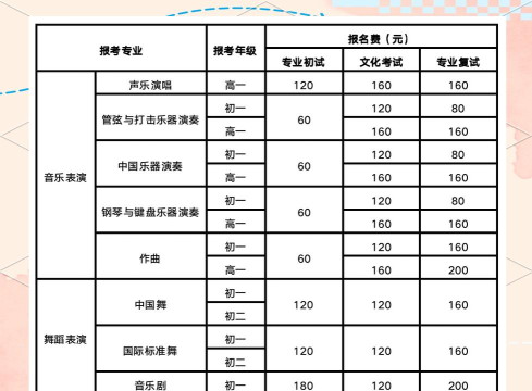 课程设置:专业主课、合唱、管弦和民乐合奏及室内乐课程;视唱练耳、乐理、钢琴基础、形体(声乐专业)等基础课程,注重学生音乐综合能力的培养。