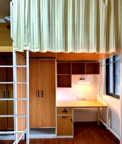 学生寝室是标准的学生公寓,6-8人间,上下床,有独立的卫生间,阳台、风扇、热水器,具体情况以学校安排为准。