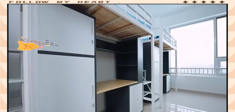 八人一间,上下铺。风扇齐全,有露台,方便晾衣服。周边绿树成荫,冬暖夏凉。有网线,可以上网。