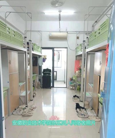 学生宿舍是标准的6-8人间,有卫浴,独立阳台,有空调、直饮水热水器、每幢楼的负一层都有公共浴室、热水房、商铺,在宿舍内还安装了电话、网络接口、鞋架、毛巾架等。