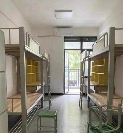 学校的标准的宿舍,寝室里面有桌子和椅子,床是上下铺的形式,整个房间的空间还是很大的,能够让学生很好的休息和生活,休息好了才能够有更高的学习效率。