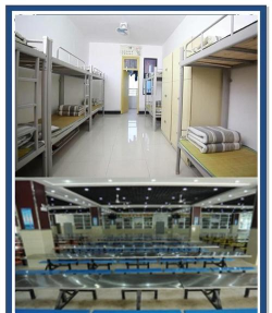 宿舍为上下铺、八人间、有风扇、空调、柜子、桌椅、独立卫生间,开通校园网络,干净卫生,舒适的生活环境。