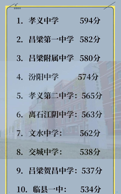 汾阳市高级职业中学创建于1983年,是汾阳市唯一一所市直公办职业高中。学校位于山西省汾阳市英雄中路40号(汾阳汽车站北侧),学校有全日制在校生1800余名,教职员工100余名,开设计算机、机电、建筑、化工、园林园艺、食品加工、财经、法律事务、旅游管理、酒店管理、电子商务等十余个专业。