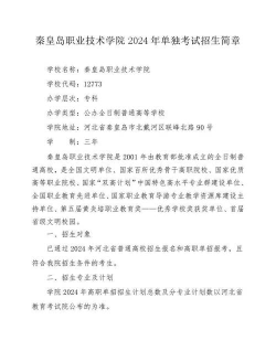 秦皇岛职业技术学院是2001年4月30日经河北省人民政府批准、国家教育部备案的全日制公办高校。学院自成立以来多次被评为省市级 职业教育先进单位。2005年被教育部、人事部、劳动和社会保障部等七部委联合授予全国职业教育先进单位;2007年在教育报人才培养工作水平评估中被评为优秀;2008年被评为河北省示范性高等职业院校。学院坐落于著名避暑胜地 ――中国夏都北戴河,占地708亩,建筑面积13.47万平方米。