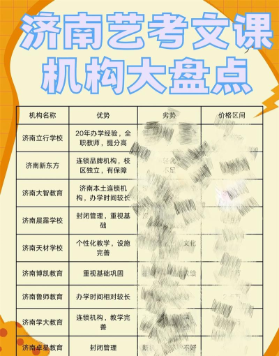 随着艺考竞争加剧,文化课成绩成为录取关键。济南作为山东省艺考培训核心城市,涌现出多家知名文化课辅导机构。本文整理6家高口碑学校 的学费标准、课程特色及适合人群,帮助考生精准匹配需求。