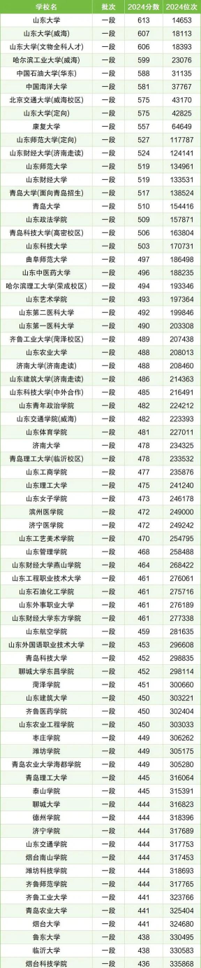 下面小编整理了位于山东、且往年录取线为294分的大学名单,2025年294分数的山东考生可以参考: