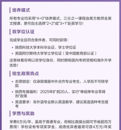 陕西科技大学中外合作学院整体表现良好,具有一定的吸引力和含金量,有“2+2”“3+1”“4+0”“3+2”本硕连读、“2+2”直博等模式,学生可根据自身情况选择,灵活接受国际化教育。