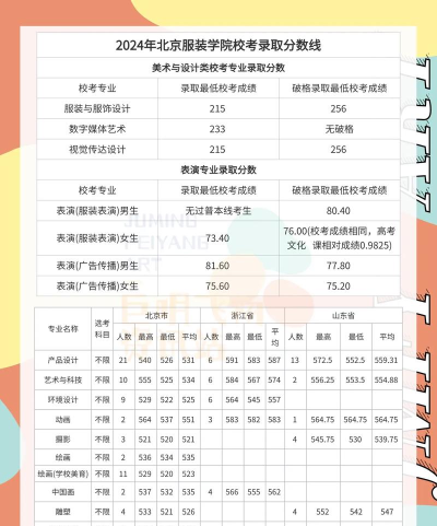北京服装学院艺术类录取分数线是该校在招生时针对艺术类考生划定的最低标准,包含文化成绩和专业成绩两部分。这些分数线由省级招生部门或大学自主确定,用处是筛选出符合要求的考生。2025年北京服装学院艺术类分数线尚未公布,为了帮助大家提前了解,小编汇总了往年的艺术类录取分数线,接着往下看吧!