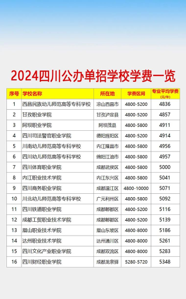 我校严格按照四川省物价局核定的标准收费:学费:中专免学费,由国家全额资助;大专学费1850—3000元/年。
