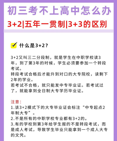 3+2学制也就是3+2分段制,三年中职学习,后期通过转段考试进入大专学校。若是坚持不了读5年,最好不要选择。