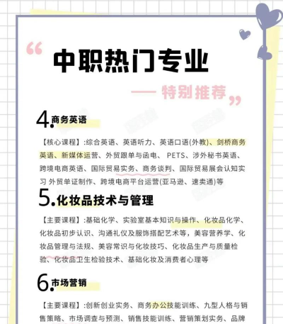 同学们,在最后的这个阶段里,尽早清楚自己的情况,也好及时选择学校,这样既能抓住最佳时机报读职高,又能选到自己喜欢的专业。通常报读职高7月之前都不算晚,所以,大家在筛选学校的时候一定不要急躁,一条一条地去分析,这样才不会后悔。
