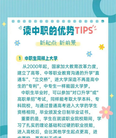 在职业教育不断改革的环境下,中职学生的升学途径增多,升学要求也不断放低,相较于普高学生而言,中职学生还有对口升学、单招考试、3+2分段式培养等多种不同类型的升学方式,能同时满足学历提升和专业学习需求。