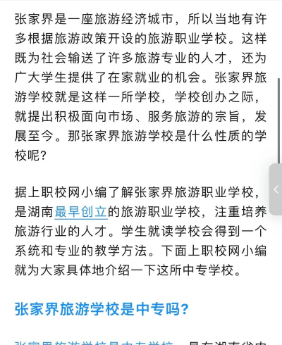 张家界旅游学校不是职高,该校是属于中专行列的学校。别看该校只是中专,其不仅是公办学校,还是省、国家示范中专,也是国家重点中专,一个职校能拿到的名头它都有,证明该校的办学是比较优秀的,并且得到了国家的认可。