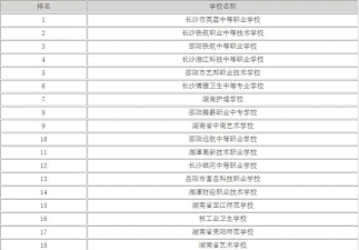 湖南省职业高中中职学校排名第一是衡阳潇湘卫生中学、第二是长沙华中涉外职业高中、第三是核工业卫生学校。
