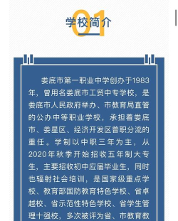 学校是一所由娄底市人民政府举办的公办中专,是省示范性特色学校、省学生管理十强校,现已更名为娄底楚怡职业学校,主要招收初中应届毕业生和具有同等学历的人员。学校办学规模不大,但教学质量有保障,教学设施齐全,教学理念先进,管理水平高超,就业门路广阔,实习实训条件也领先于省内同类学校。同时学校也会关注每个学生的身心发展和个性发展,学校还会开展丰富多彩的主题活动,让学生的生活在紧张忙碌的同时,也快乐充实。