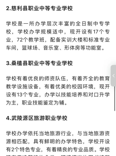 在张家界有5所公办中专,这些学校同学们只要分数够都可以选择。也许大家觉得中专没有普高好,但是总有学生分数水平不同,去到什么样的平台也是自己目前的成绩决定的。进入中专后,大家可以继续努力,并没有断掉前进的路,继续学习文化和专业课,还有逆袭的机会。
