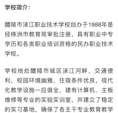 醴陵市渌江职业技术学校自创立至今,获得了许多的办学荣誉,学校的实力也在进一步的加强,并且学校的办学情况也比较好。有同学想毕业后选择就业,也有宽阔的就业渠道。同学们不管选择了哪所学校,都要不忘初心,不要让自己以后回想起来后悔。
