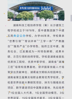 该校成立于1978年,是一所由大型央企举办的建筑类中职学校,也是国家住建部、教育部确定的建设行业紧缺型技能人才培养培训基地,具有省市建设、劳动、财政等行政部门批准的多种岗位培训和职业技能鉴定资质,为湖南的建筑行业输送了一大批专业技术人才。