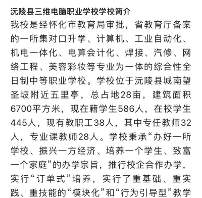 从上述内容我们可以知道,沅陵县三维电脑职业学校的办学优势还是比较可以的,该校在办学过程中也获得了不少的荣誉称号。该学校还有着自己的办学特色,实行准军事化管理,保障学生的安全。不管是选择了哪所学校,重要的是自己坚持学习。