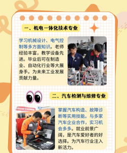 学院设有六院二部,共开办符合市场需求的23个专业,其中有5个热门五年制大专招生专业。建设了机电、汽车等特色精品专业,形成了以先进装备制造专业为重点的专业格局,专业课程设置层次化、模块化。每个专业还有供学生进行实践操作的完善的实训中心、实验室等,实现了教育教学现代化。