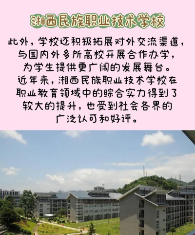 在湘西的中职学校中,这2所学校都是同类学校里办学实力比较出色的。当然,湘西优秀的中职学校远不止这2所,同学们在挑选学校的时候,要想清楚自己的兴趣爱好以及特长是什么,然后根据自身的条件来进行选择,找出最适合自己的那所学校。