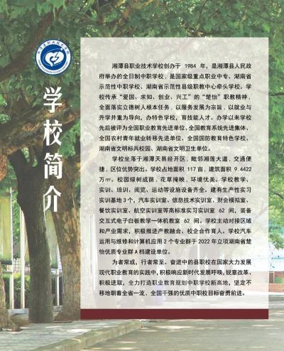 湘潭县职业技术学校不管是办学条件还是专业设置的方面,都是十分负责的学校,也能满足同学们的不同需求,有兴趣的同学看看自己是否符合招生要求,也可以去学校官网查询详细内容。
