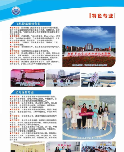 该专业面向民航乘务、民航安检、民航值机、民航售票等一线岗位,实训方面:拥有航空模拟实训飞机,实训设备齐全,同时依托校企合作单位,建立多个校外实训基地。就业方面:开设航空服务高端就业订单班,采用订单式培养,保障学生毕业后能在民航系统内就业。升学方面:航空服务专业学生可参加单独招生或对口高考,进入全日制专科、本科高等院校继续深造,