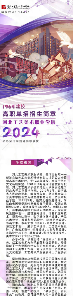 河北工艺美术职业学院简称河北工艺美院,是河北省唯一一所旨在培养工艺美术设计专业人才的、公办全日制高等专科艺术院校。