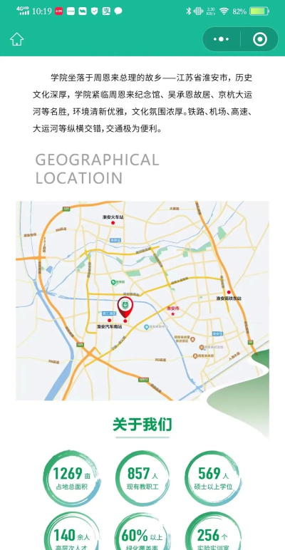 学院占地1269亩,总建筑面积近28万平米,现有全日制在校生11000余人。学院紧临周恩来纪念馆、吴承恩故居等游览名胜,环境清新优雅,文化氛围浓厚,是青年学生求知读书的理想学府。
