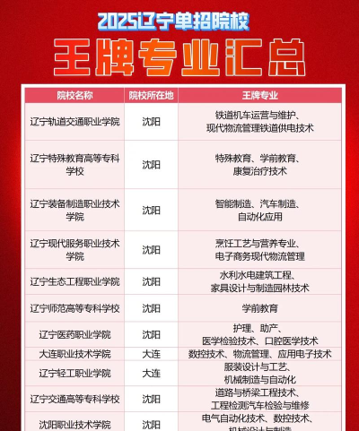 2025辽宁高职单招院校有辽宁特殊教育师范高等专科学校、锦州师范高等专科学校、辽宁农业职业技术学院、辽宁建筑职业学院、辽阳职业技术学院、辽宁机电职业技术学院、抚顺师范高等专科学校等等。