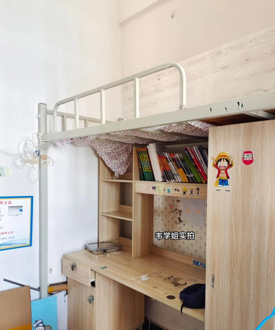 学校的宿舍条件是十分棒的,寝室空间非常大,上面是床,下面是桌子,还有书柜,也有一个小箱子可以让同学放东西,寝室里面有阳台,整个房间也是通风透气,给人一种舒畅的感觉,能够更利于学生的休息。