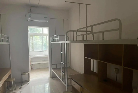 学生都是6人寝,上下铺,没有独立书桌。有一个大书桌和一张折叠桌。有阳台,可供晾衣服和存放物品。寝室有一个公用电扇,没有空调,可以自己购置风扇。饮水机缴纳押金后可以使用,叫水需要跟楼下宿管说,宿管大叔会送到寝室帮忙安装好。一个公用墙壁暑假可供放书,每个寝室都有独立卫生间,有热水和蹲式厕所。