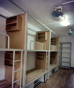 学生寝室是标准的学生公寓,有设备完善的住宿条件,卫生间、阳台、风扇、热水器等设施都具备,整个房间的空间还是很大的,能够让学生很好的休息和生活,休息好了才能够有更高的学习效率。