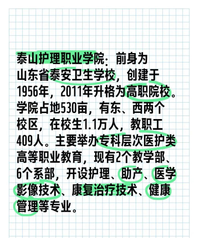 山东泰安卫生学校专业名单:护理、临床医学、康复医疗、医学影像、口腔医学、药学、助产、眼视光。