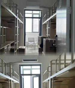 学校宿舍是标准的学生公寓,上下床,配套设施一流。空间宽敞,光线明亮,干净整洁,并且还有单独的衣柜和浴室,非常的方便。