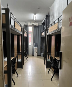 学生寝室是标准的学生公寓,6-8人间,上下床,有独立的卫生间,阳台、风扇、热水器。每个学生都有独立的书桌和衣柜。寝室氛围温馨和谐,相信每个来到我们学校的孩子都能很快适应学校的生活。