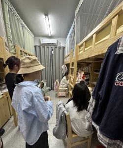 宿舍为6-8人间,公寓楼内学生会用到的生活设施应有尽有,上下床,书桌衣柜,热水,独立的卫生间和洗漱台等等,非常的方便,同学们住起来也是非常舒适的。