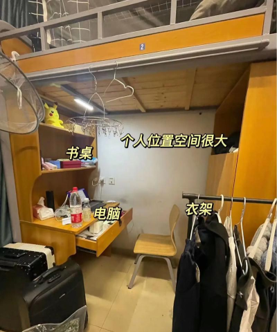 学校宿舍是标准的学生公寓,上下床,配套设施一流。空间宽敞,光线明亮,干净整洁,并且还有单独的衣柜和浴室,非常的方便。