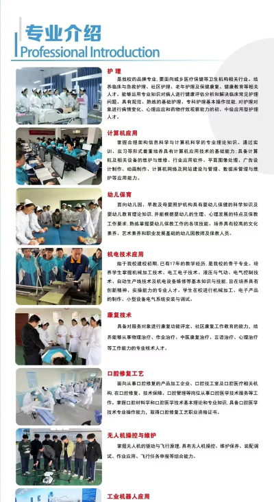 校拥有护理专业实训楼、机电一体化实训楼、计算机应用实训楼、音乐舞蹈室。其中护理专业实训楼现有基础护理实训室2间、多媒体示教室1间、模拟手术室1间、外科实训室1间、健康评估实训室1间、妇产科实训室1间、儿科实训室1间、母婴模拟病房1间、急救护理实训室1间、ICU实训室1间,并按《中等医学教育主要专业设置标准》配备了实训设施。各实训楼可同时满足全校800名学生共同实训。