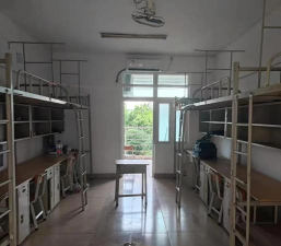 学生公寓实行公寓化管理,有4人间,6人间、8人间等不同规格,设置有洗手间、阳台。配套有单人钢架床、衣柜、写字台、书架、椅子。每间宿舍配有宽带网接口。食堂设施设备齐全,就餐环境十分舒适。