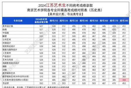 南京艺术学院往年美术类各省录取分数线汇总