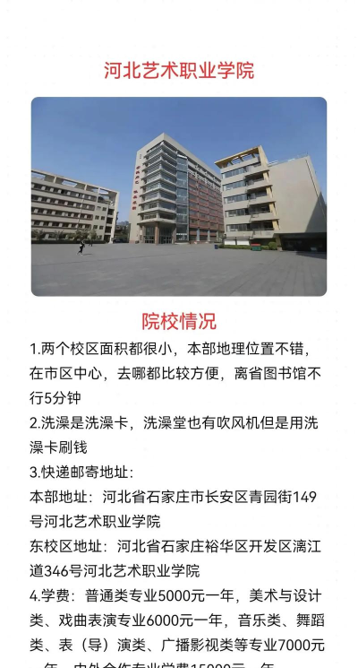 综上所述就是小编整理的关于石家庄艺术职业学校的宿舍环境等其他环境内容了,希望能对同学们有所帮助,对石家庄艺术职业学校感兴趣或想了解更多信息的同学,可以继续关注找校通招生网,了解学校更多的其他信息,希望同学们都能找到自己合适的学校。