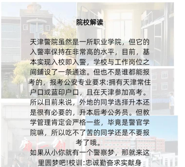 天津市一线城市 而且这个学校虽然是专科学校但是分数线还是不低的 你想学什么专业啊 根据专业找学校比较好 你可以查下某学校的特色专业 还有 最好选有名气一点的学校 这样有助于你以后的就业问题