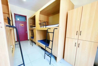 学生寝室是标准的学生公寓,6-8人间,上下床,有独立的卫生间,阳台、风扇、热水器。每个学生都有独立的书桌和衣柜。寝室氛围温馨和谐,相信每个来到我们学校的孩子都能很快适应学校的生活。
